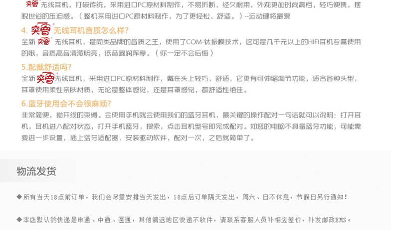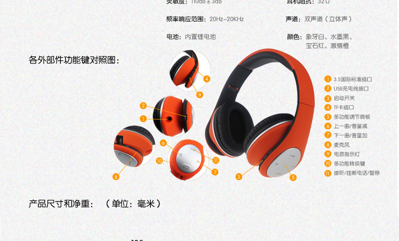 7.先进的回声消除功能 8.手机通话和音乐两种模式自动切换